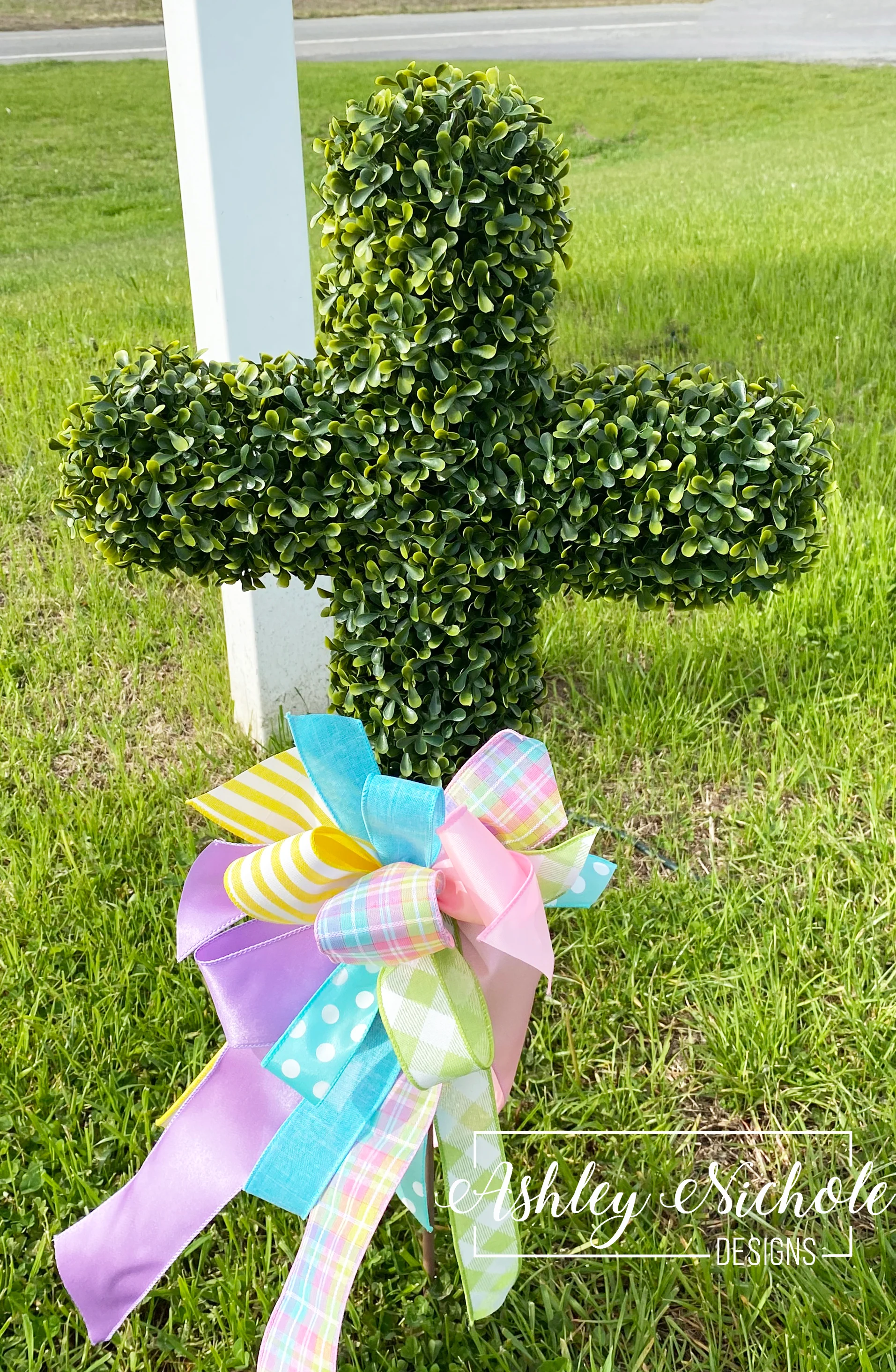 24" ~ 3-D Boxwood Cross STAKE & Bow - UV Resistant